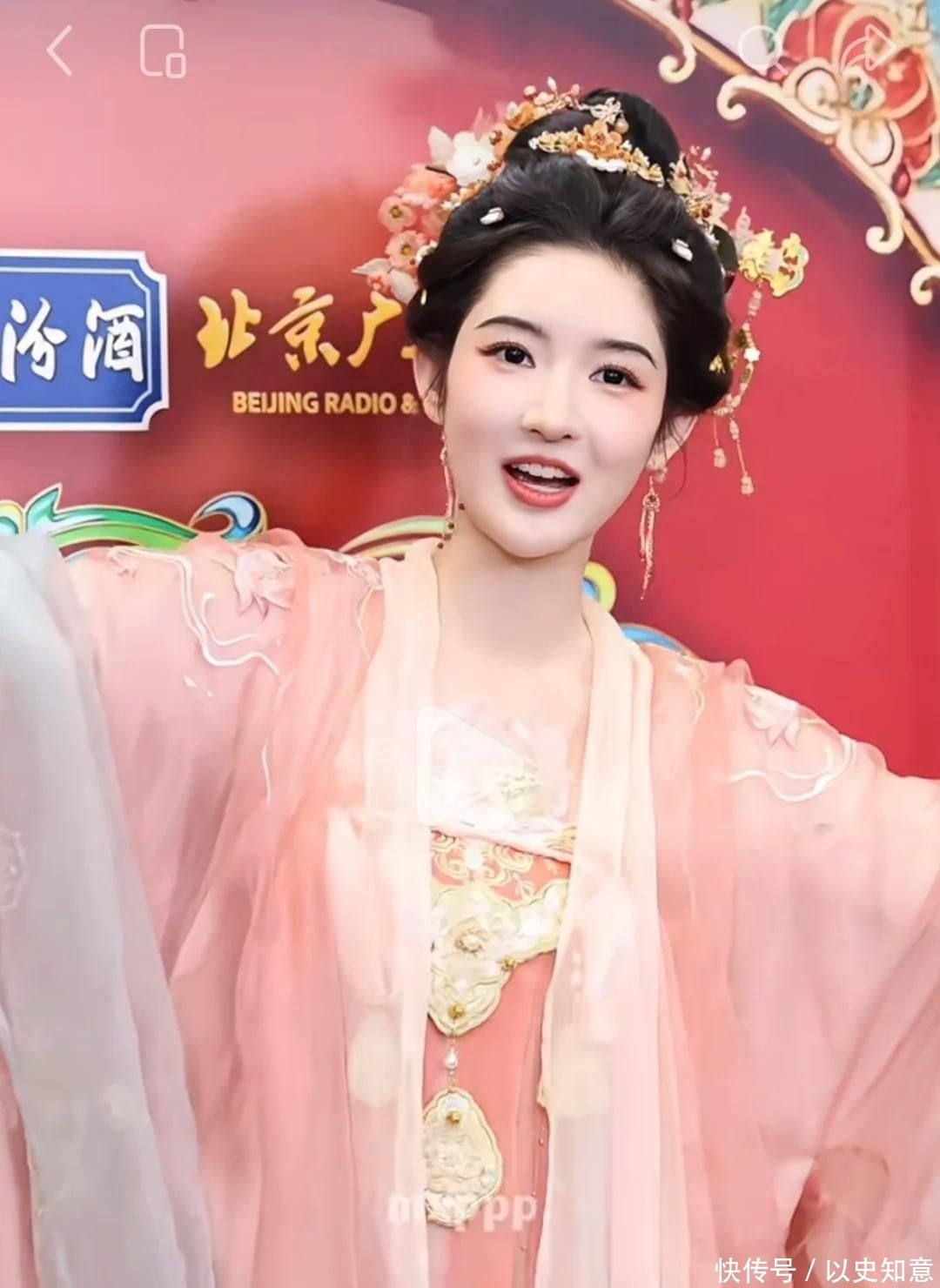 而早在1月29日的北京广播电视台春晚彩排现场,她又以粉色改良襦裙造型惊艳亮相,云肩绣纹与流苏飘带随步轻扬,甜而不腻、灵而不浮,再次印证其“剧抛式”造型适配能力——同一张脸,能驾驭清冷仙气,亦可演绎明媚生机。