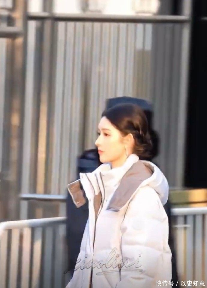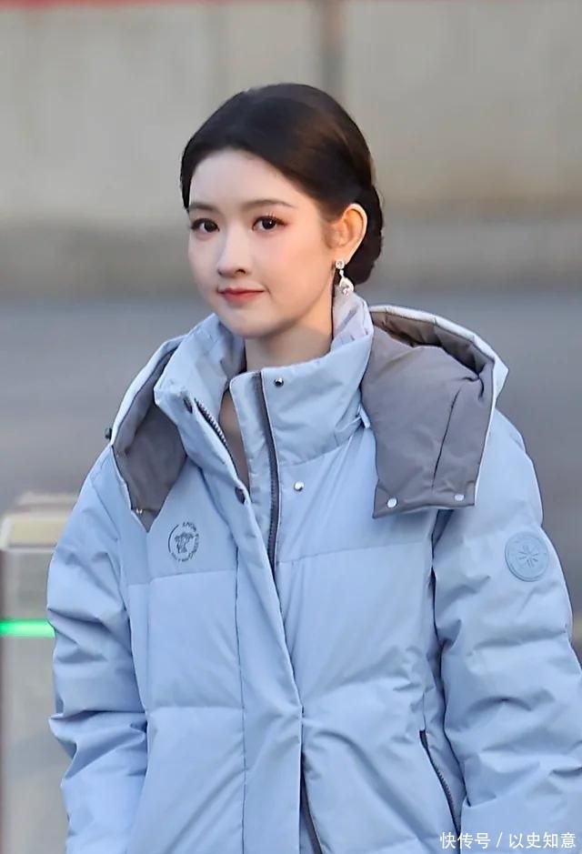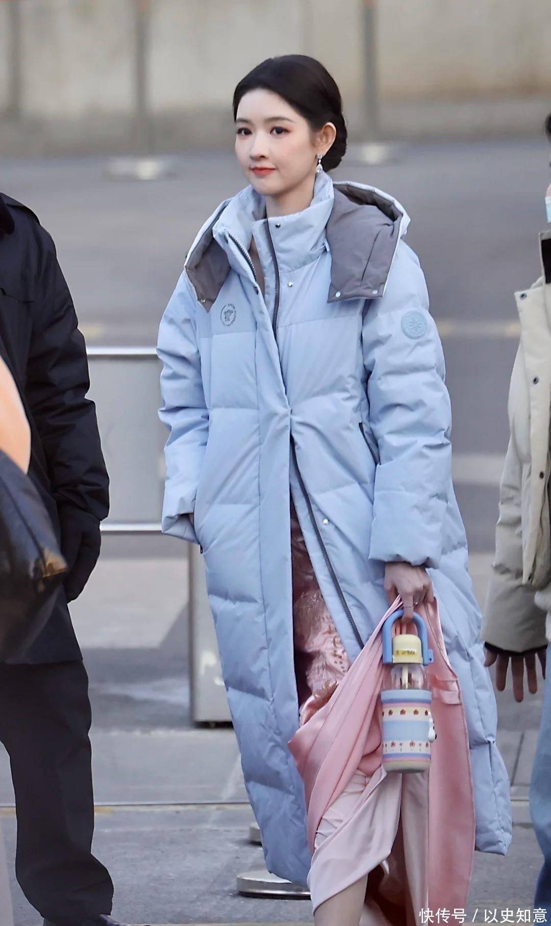当日她外罩一件低饱和灰调羽绒服,内搭粉色缎面长裙,冷感材质与暖柔色调形成精妙对冲,光泽流转间尽显低调奢华的贵气底蕴。